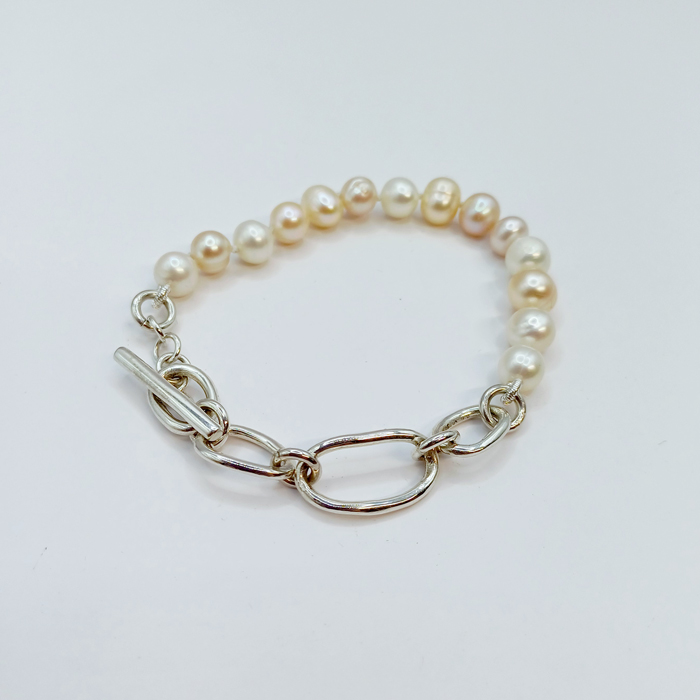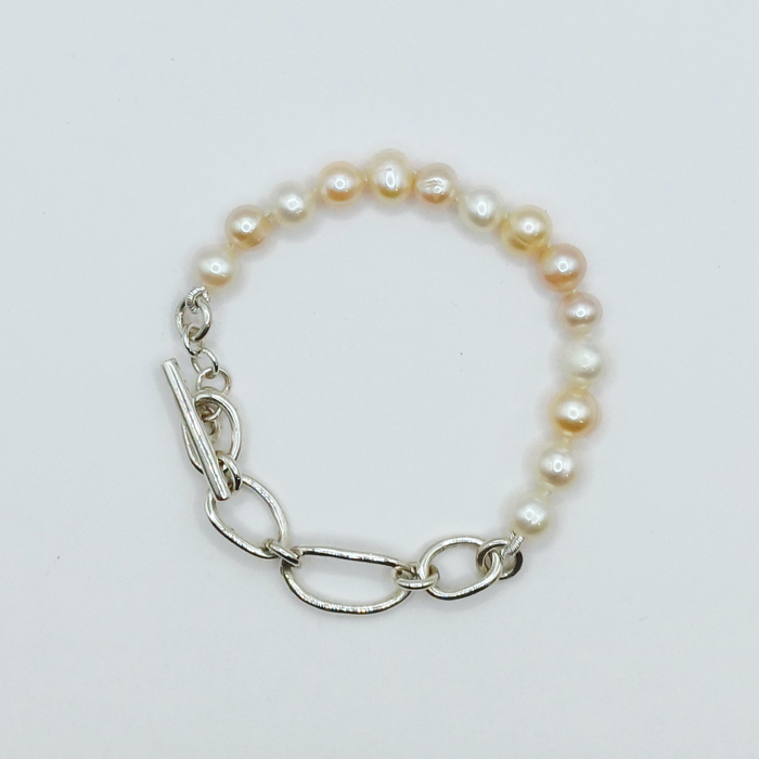 A METÀ+PERLE ROSA/BIANCHE - bracciale argento 925 perle rosa-bianco
