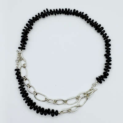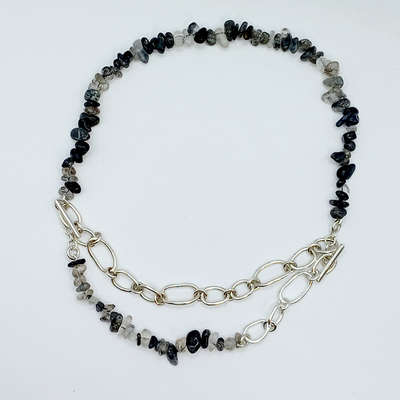 Non la solita collana! Indecisa tra metallo e pietre?perchè non tutte e due!Lunghezza 60cm composta da collana e bracciale separabili.Infilatura a nodi