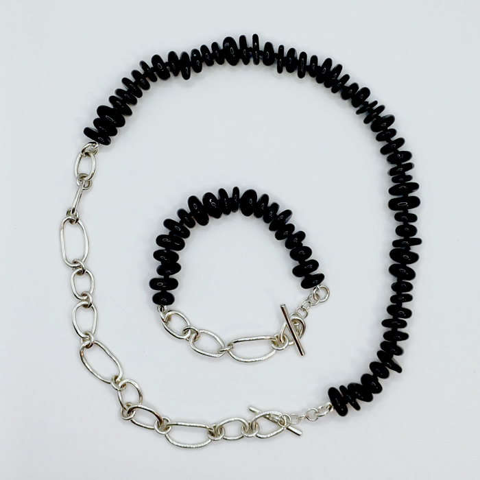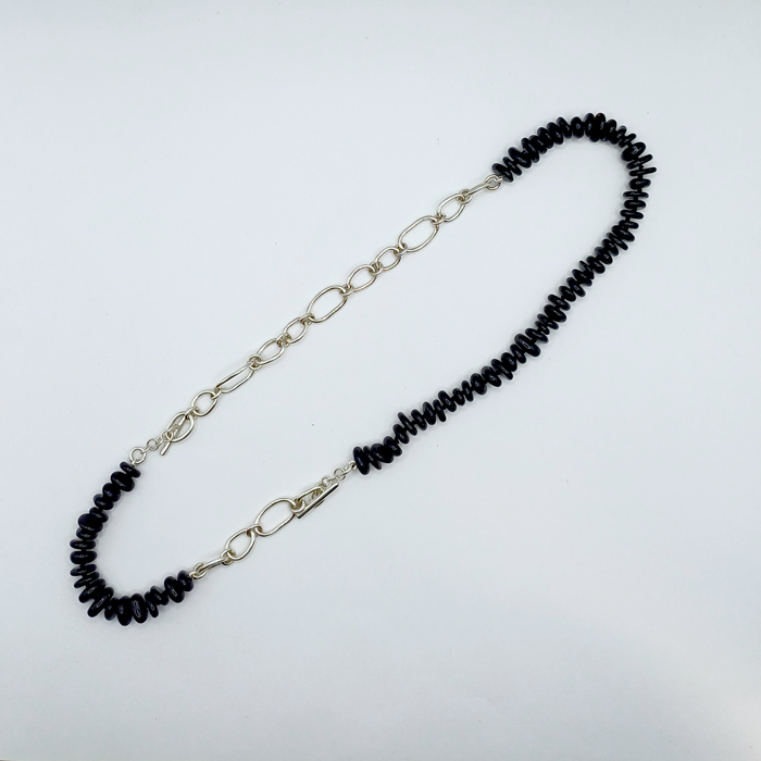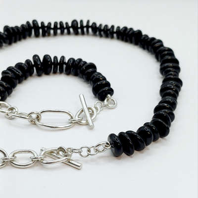 Non la solita collana! Indecisa tra metallo e pietre?perchè non tutte e due!Lunghezza 60cm composta da collana e bracciale separabili.Infilatura a nodi
