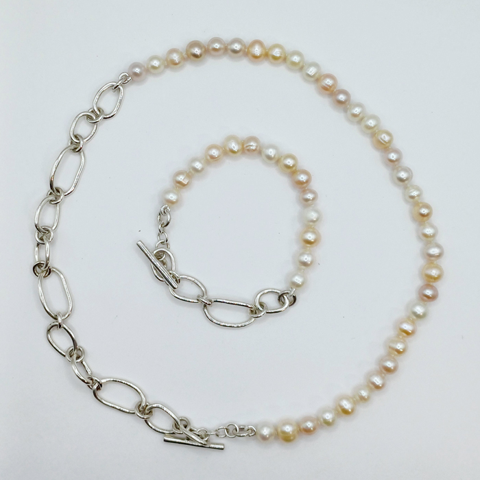 A METÀ+PERLE ROSA/BIANCHE - girocollo argento 925 perle rosa-bianco