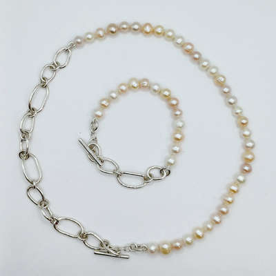 Non la solita collana! Indecisa tra metallo e pietre?perchè non tutte e due!Lunghezza 60cm composta da collana e bracciale separabili.Infilatura a nodi