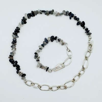 Non la solita collana! Indecisa tra metallo e pietre?perchè non tutte e due!Lunghezza 60cm composta da collana e bracciale separabili