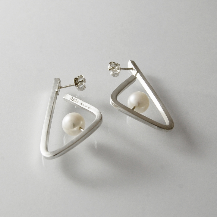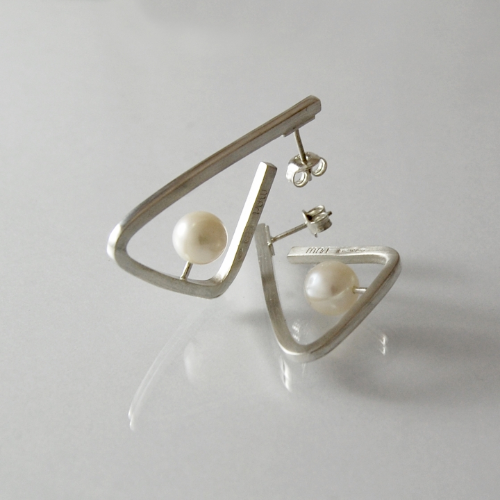TRIANGOLO + - Monorecchino argento 925 perla bianca